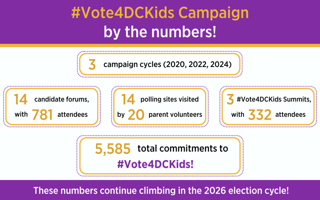 #Vote4DCKids is a parent-led campaign to put our children at the center of one of our most important rights because OUR VOICE = OUR VOTE!
